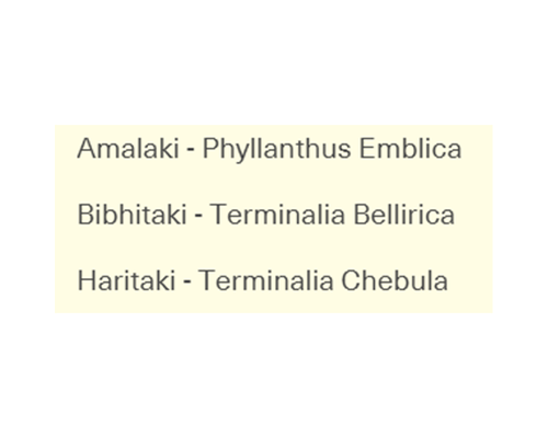 Triphala is traditionally used in Ayurveda as a laxative for the relief of occasional constipation, as an eye tonic, as Rasayana (rejuvenative tonic), as a digestive tonic to promote digestive fire, increase appetite, and aid in digestion (stomachic), to Assist relieve symptoms such as heartburn and indigestion associated with Amlapitta (hyperacidity/dyspepsia), to Assist expel intestinal worms (vermifuge), to Assist relieve cough, to Assist relieve colic pain and flatulence (carminative). Source of/Provides antioxidants.