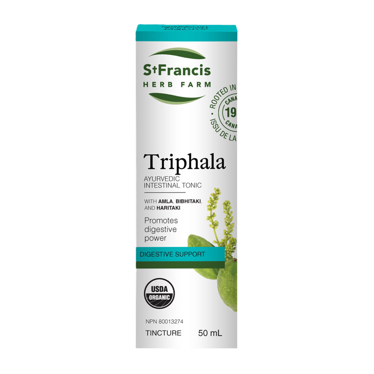 Triphala, or “3 fruits”, combines Amla (Bibhitaki, and Haritaki fruits in a certified organic intestinal tincture to promote strong digestion that also acts as a Aidive tonic for whole body health. Taken after the evening meal, Triphala offers powerful digestive Aid from the ancient healing system of Ayurveda.