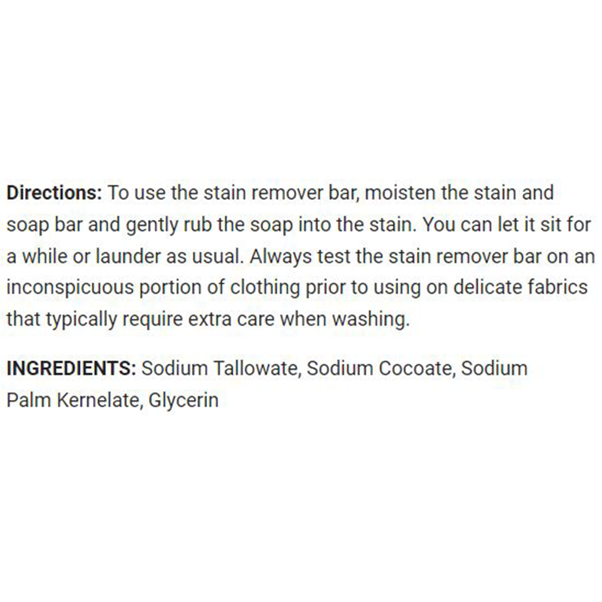 To use the stain remover bar, moisten the stain and soap bar and gently rub the soap into the stain. You can let it sit for a while or launder as usual. Always test the stain remover bar on an inconspicuous portion of clothing prior to using on delicate fabrics that typically require extra Wellness-Care when washing.