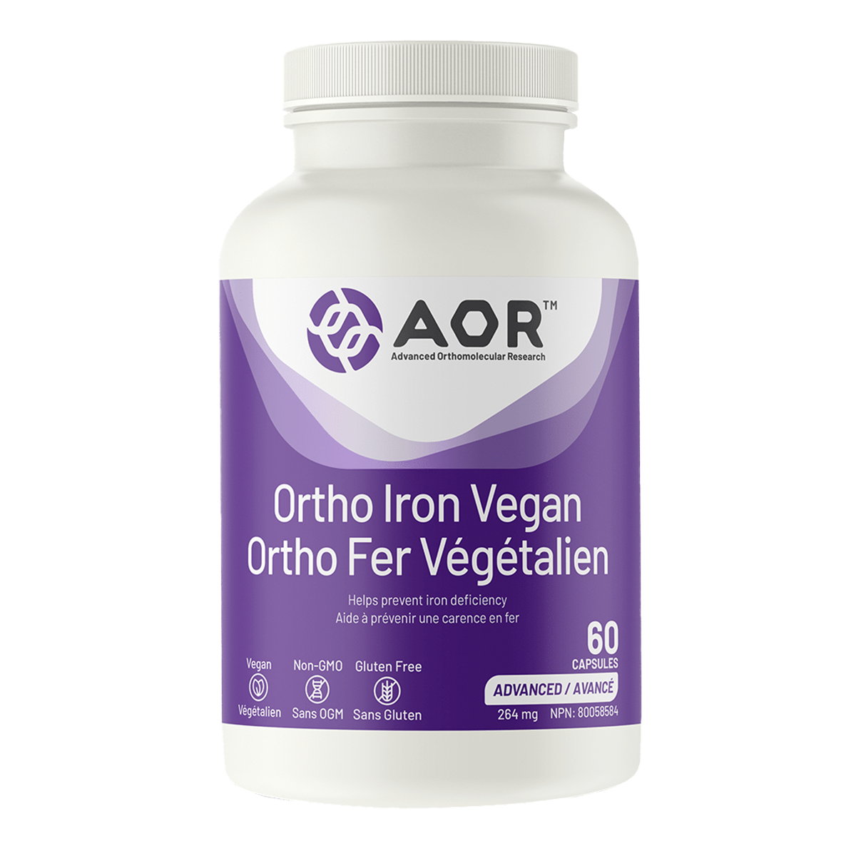 Ortho Iron Vegan is a vegan and lactoferrin-free version of Ortho Iron, AOR’s award-winning iron formula. It includes synergistic nutrients that are necessary for proper iron absorption, and is useful for Wellness-Car-eing symptoms of iron deficiency anemia. Ortho Iron Vegan is well tolerated, and doesn’t tend to cause the side effects common to iron supplements such as nausea or constipation.