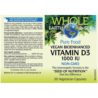 Whole Earth & Sea Vegan Bioenhanced Vitamin D3 1000 IU 90 Veggie Caps