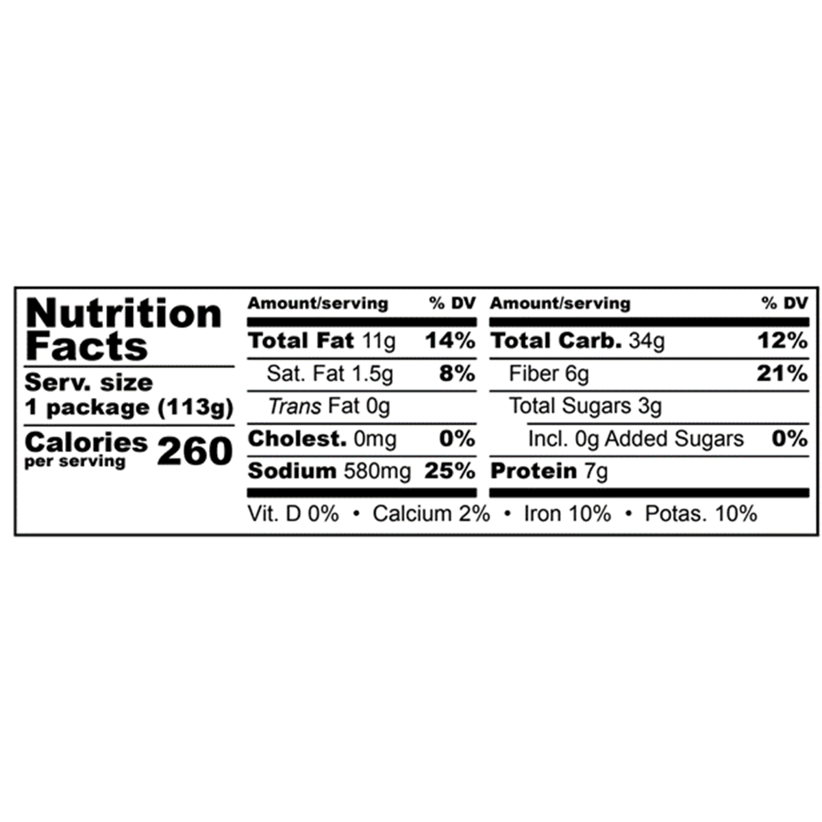 Masa loaded with black beans and a salsa of habaneros and serranos. Ready-to-eat or microwave to enjoy warm!