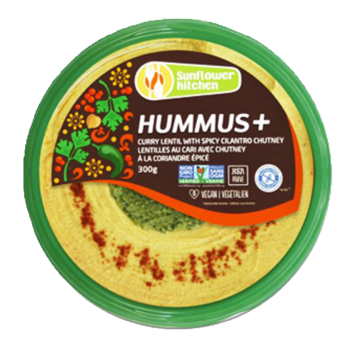 Sunflower Kitchen Hummus+ Curry Lentil With Spicy Cilantro Chutney 300g
