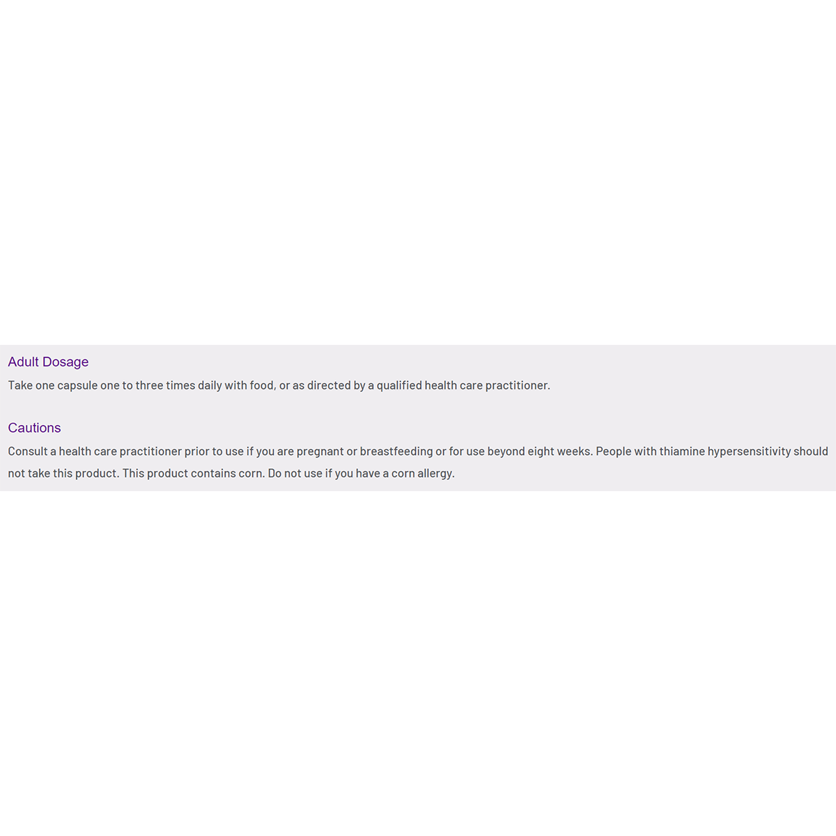 Consult a health Wellness-Care practitioner prior to use if you are pregnant or breastfeeding or for use beyond eight weeks. People with thiamine hypersensitivity should not take this product. This product may contain corn, do not use it if you have a corn allergy.