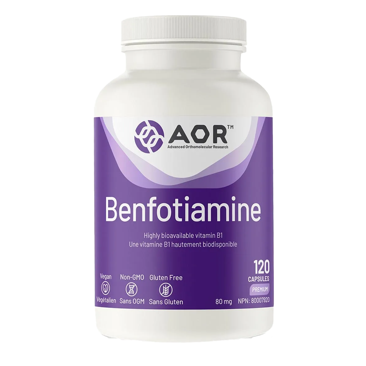 Benfotiamine is a natural and bioavailable source of vitamin B1 and may be helpful in reducing the symptoms and complications of having poor carbohydrate control. AOR’s Benfotiamine is one of the few products to contain this active form of B1 in an evidence-based dose.
