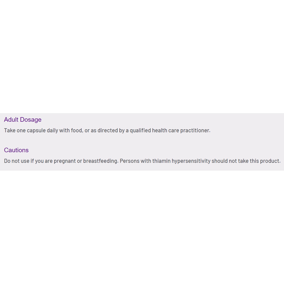 Do not use if you are pregnant or breastfeeding. Persons with thiamin hypersensitivity should not take this product.