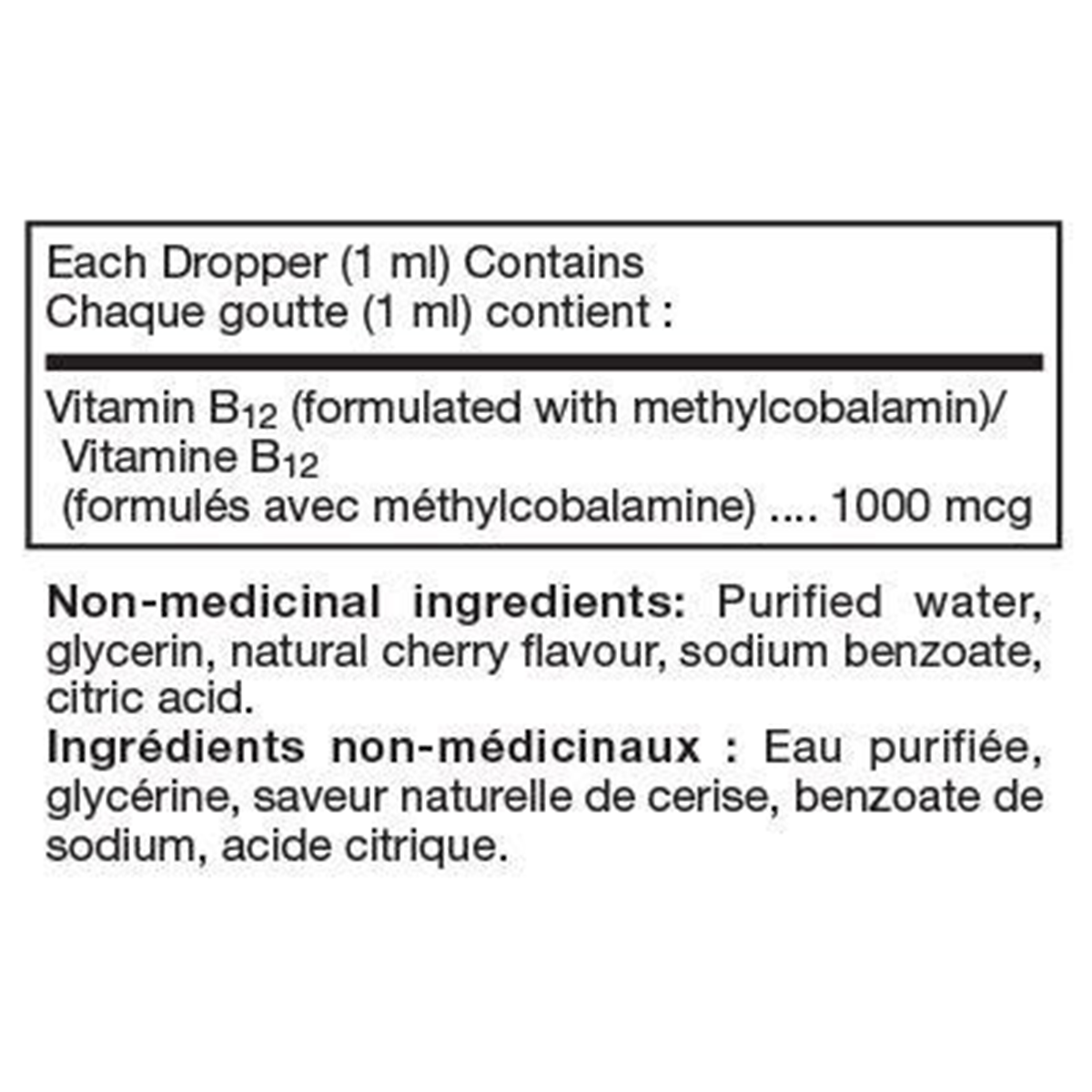 Methylcobalamin Liquid B12 delivers 1,000 mcg of highly bioavailable vitamin B12 in a delicious, natural cherry-flavored liquid. Vitamin B12 is crucial for nutrient metabolism, serving as a cofactor for methylmalonyl-CoA mutase enzymes, which convert odd-chain fatty acids and branched-chain amino acids into succinyl-CoA, a common citric acid cycle intermediate. It also acts as a methyl donor in the conversion of homocysteine to methionine.
