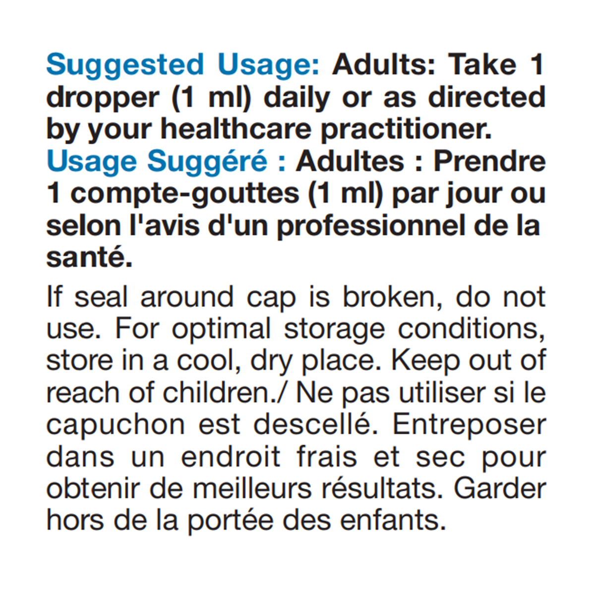 Adults: Take 1 dropper (1 ml) daily or as directed by your healthcare practitioner.