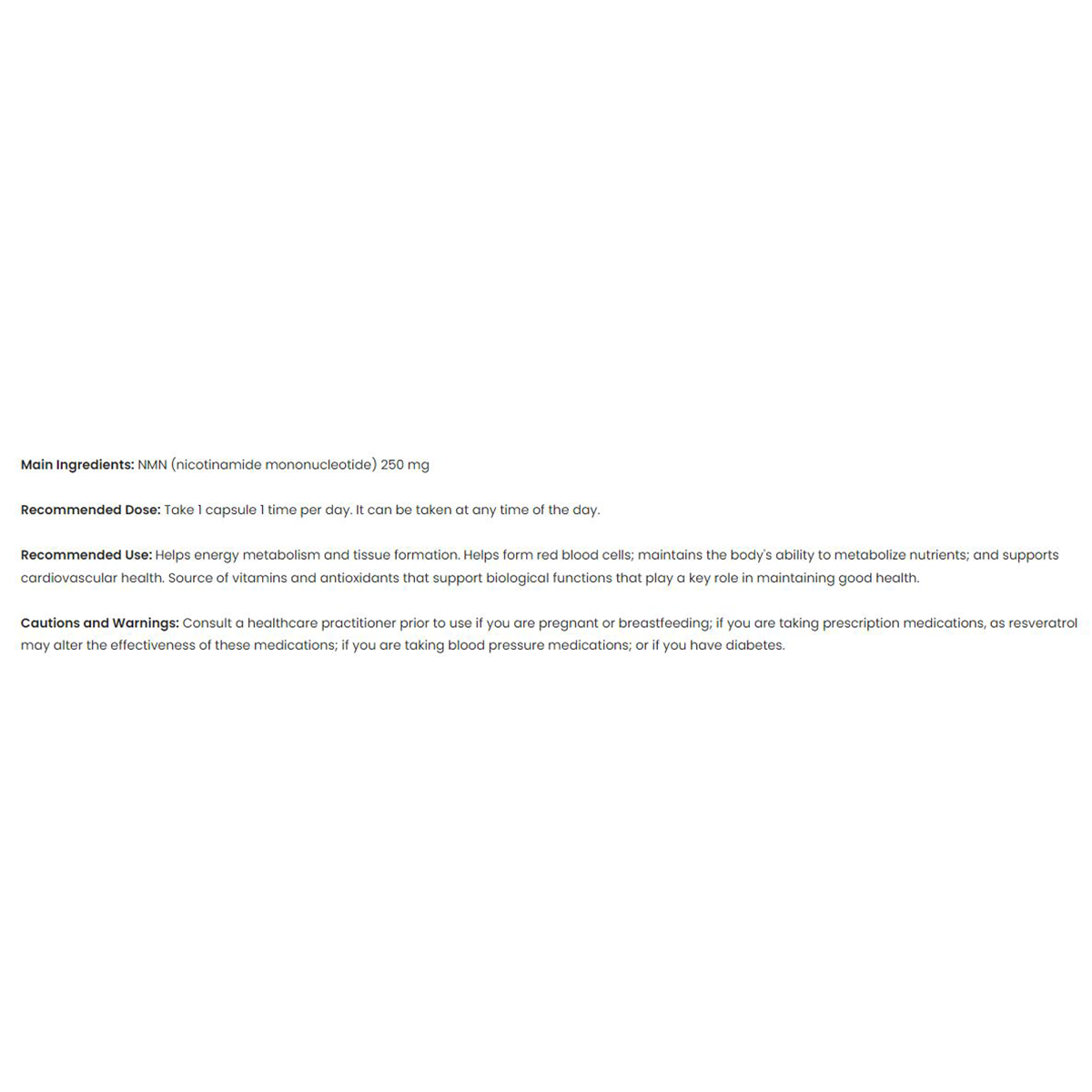 Maplelife Nutrition NMN 250mg 60 Veggie Caps