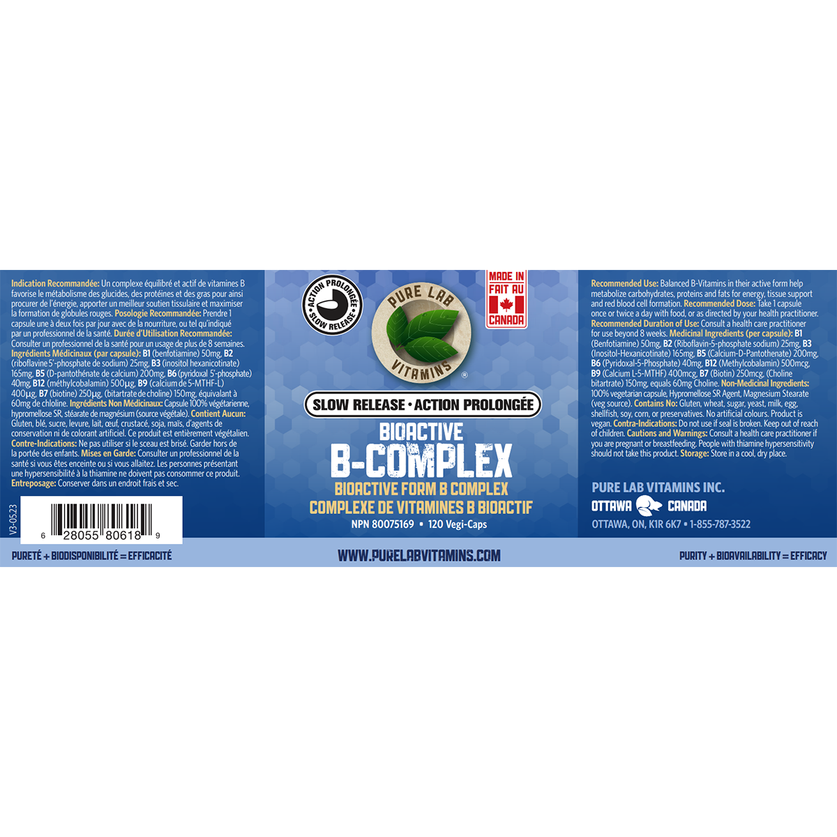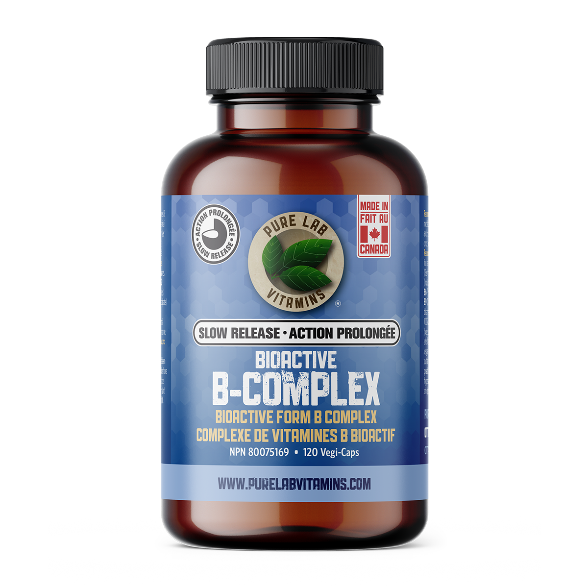 Pure Lab’s Slow Release BioActive B-Complex is comprised of all B vitamins, including the biologically active forms of thiamine (benfotiamine), niacin (inositol hexanicotinate), riboflavin (riboflavin-5-phosphate, folate (calcium-L-5- MTHF), B6 (pyridoxal-5-phosphate) and B12 (methylcobalamin). Like a fully-charged battery instead of a partially drained one, the vitamins in our formulation are ready to perform metabolic work as soon as they get absorbed. This balanced ratio of B vitamins in their bioavailable form provides the Aid necessary to improve resilience against stress.