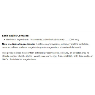 Natural Factors Vitamin B12 Methylcobalamin 1000mcg 90 Tablets