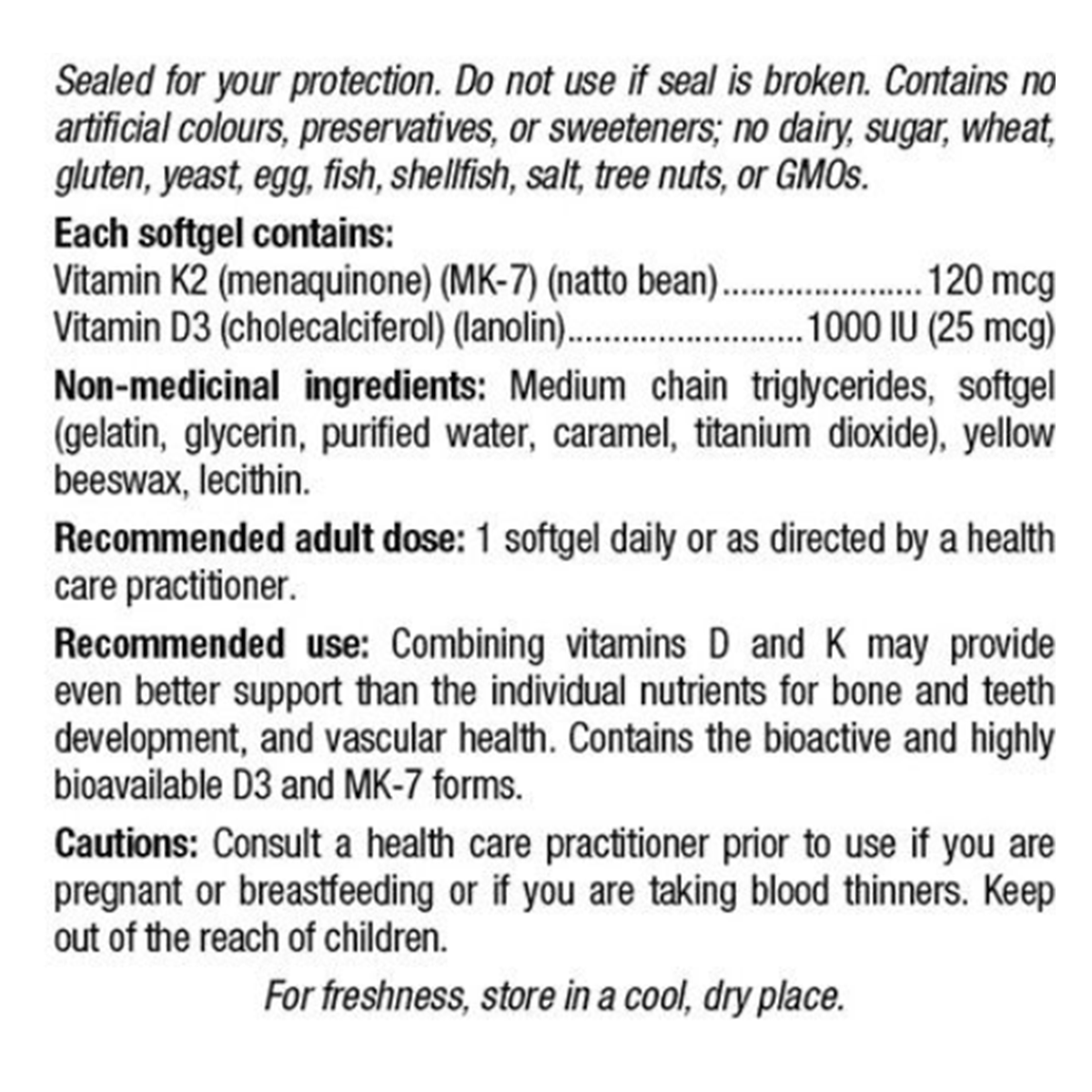 Contains the bioactive and highly bioavailable D3 and MK-7 forms.