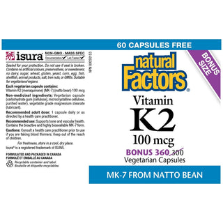Natural Factors Vitamin K2 100mcg 300+60 Veggie Caps
