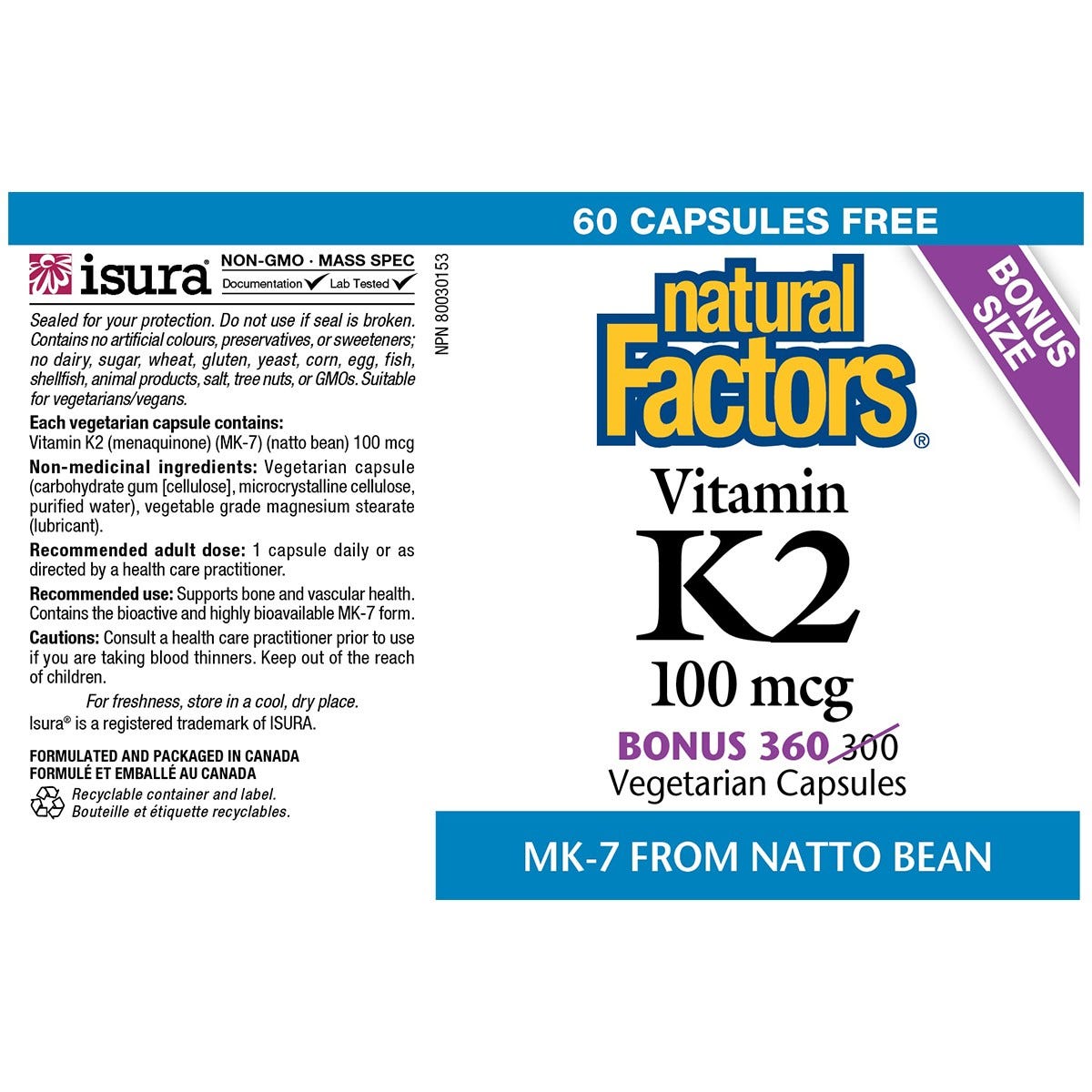 Natural Factors Vitamin K2 contains MK-7, the most bioavailable form of vitamin K derived naturally from natto beans. Each dose provides 24-hour Protection-Plan-Plan by guiding calcium toward the bones and teeth where it is needed most, and away from the arteries where it causes damage.