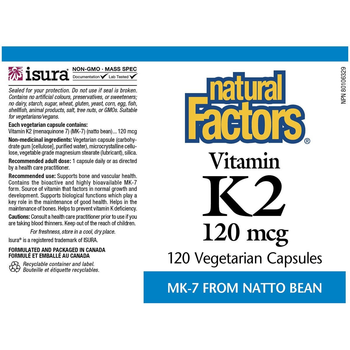 Natural Factors Vitamin K2 120mcg 120 Veggie Caps