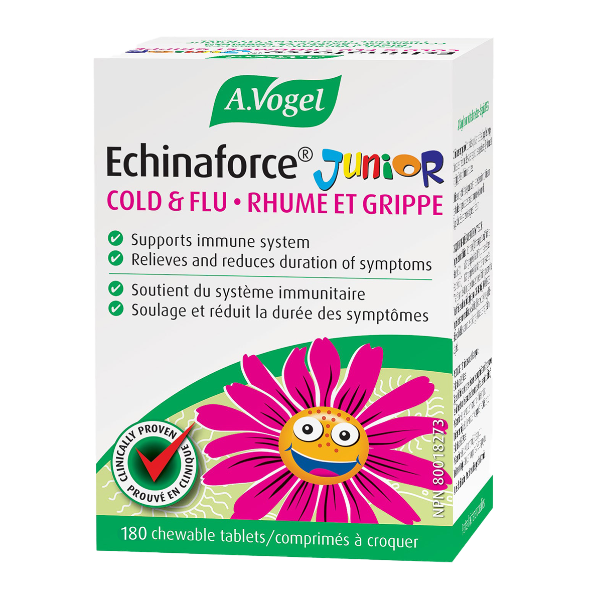 A.Vogel Echinaforce® Junior Echinacea Tabs Assists your immune system stop germs before an infection takes hold. The active ingredients in this remedy decrease the ability of infectious agents to penetrate within the body's cells. They also improve the speed at which the immune cells respond to invading germs.