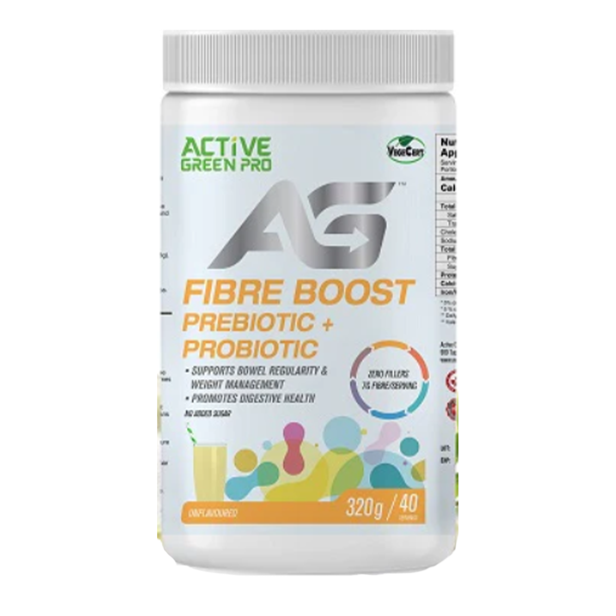 Active Green Pro Fibre Boost. This powder is 100% natural with no fillers, artificial flavours, sweeteners, colours, gluten, or sugar. Simply mix one scoop (8g) in your favourite food or beverages. It is also non-thickening, so it can be used in many beverages and foods – bake or cook with it, it’s that easy!