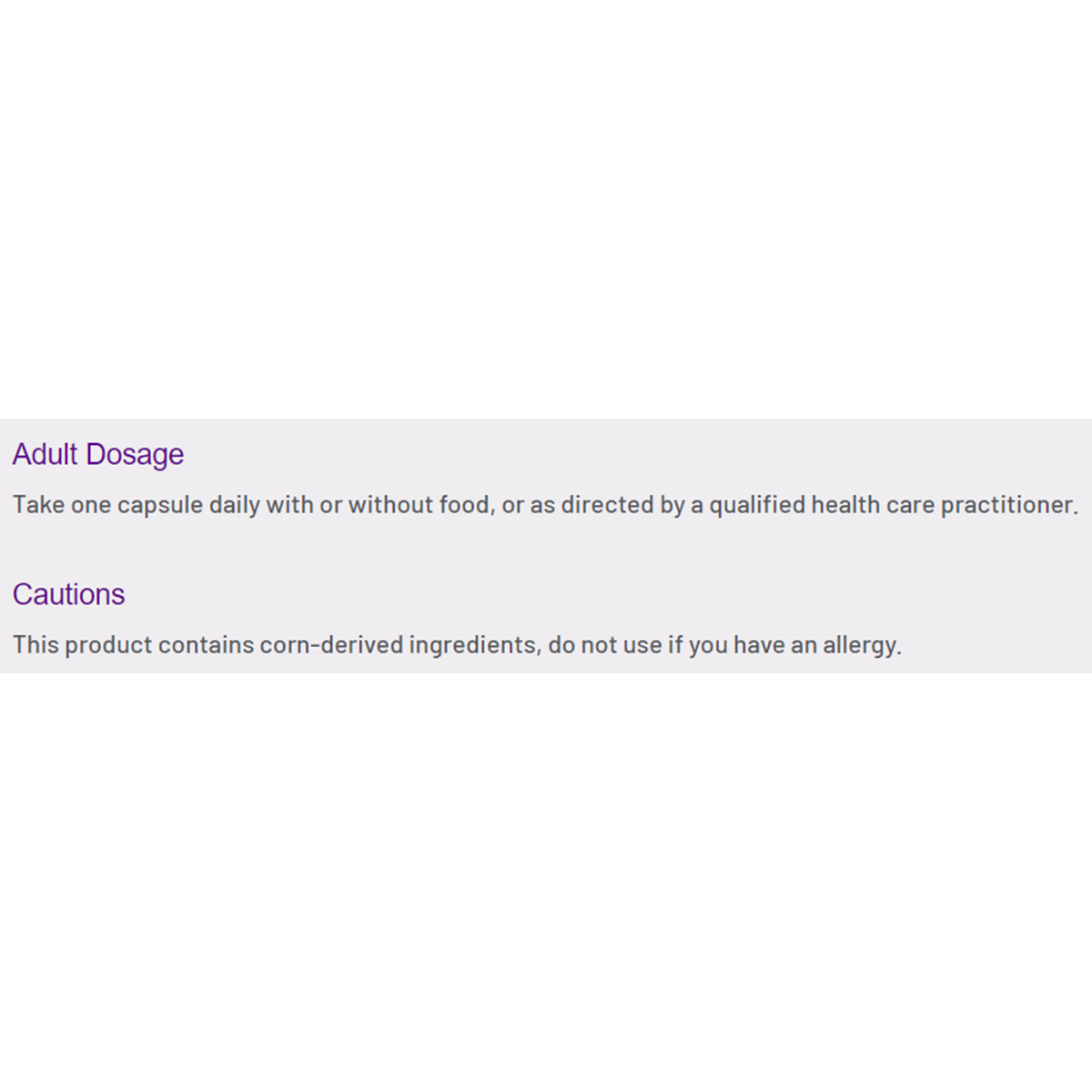 Take one capsule daily with or without food, or as directed by a qualified health Wellness-Care practitioner.