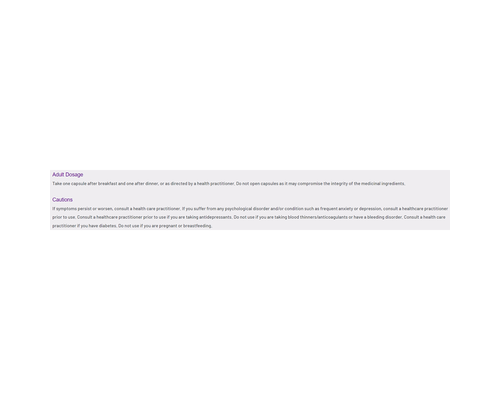 If symptoms persist or worsen, consult a health Wellness-Care practitioner. If you suffer from any psychological disorder and/or condition such as frequent anxiety or depression, consult a health-care practitioner prior to use. Consult a health-care practitioner prior to use if you are taking antidepressants. Do not use if you are taking blood thinners/anticoagulants or have a bleeding disorder. Consult a health Wellness-Care practitioner if you have diabetes. Do not use if you are pregnant or breastfeeding.