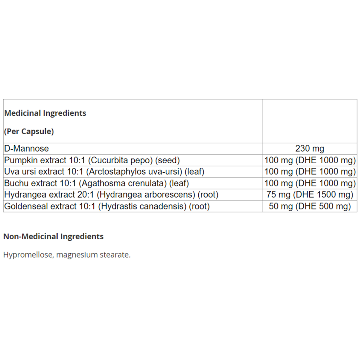 Medicinal Ingredients (Per Capsule)