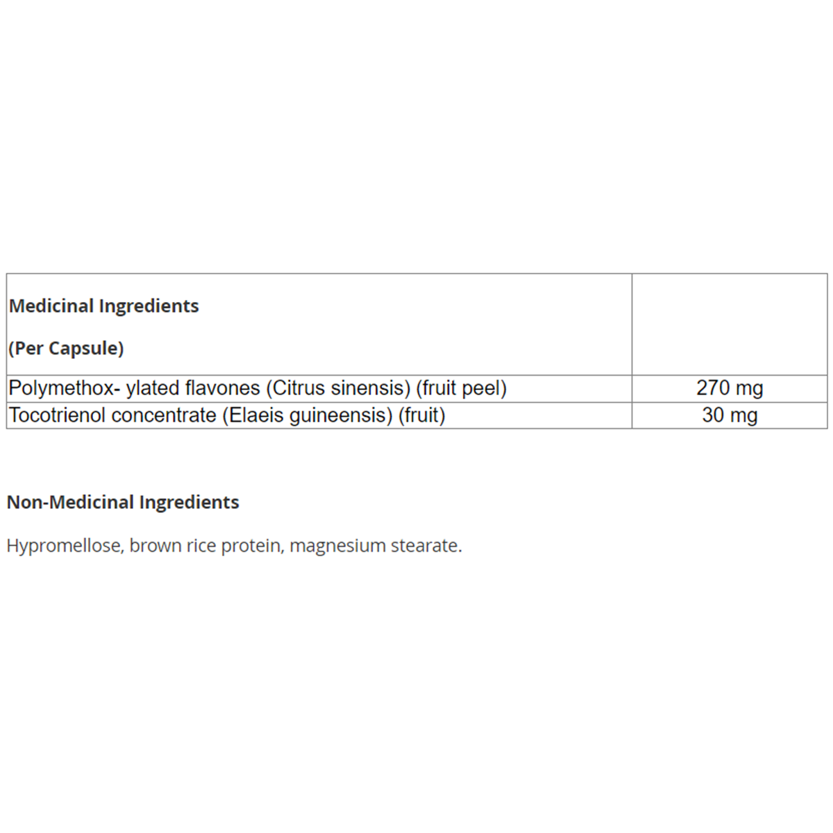 • Comprises a natural combination of polymethoxylated flavones and tocotrienol concentrate.