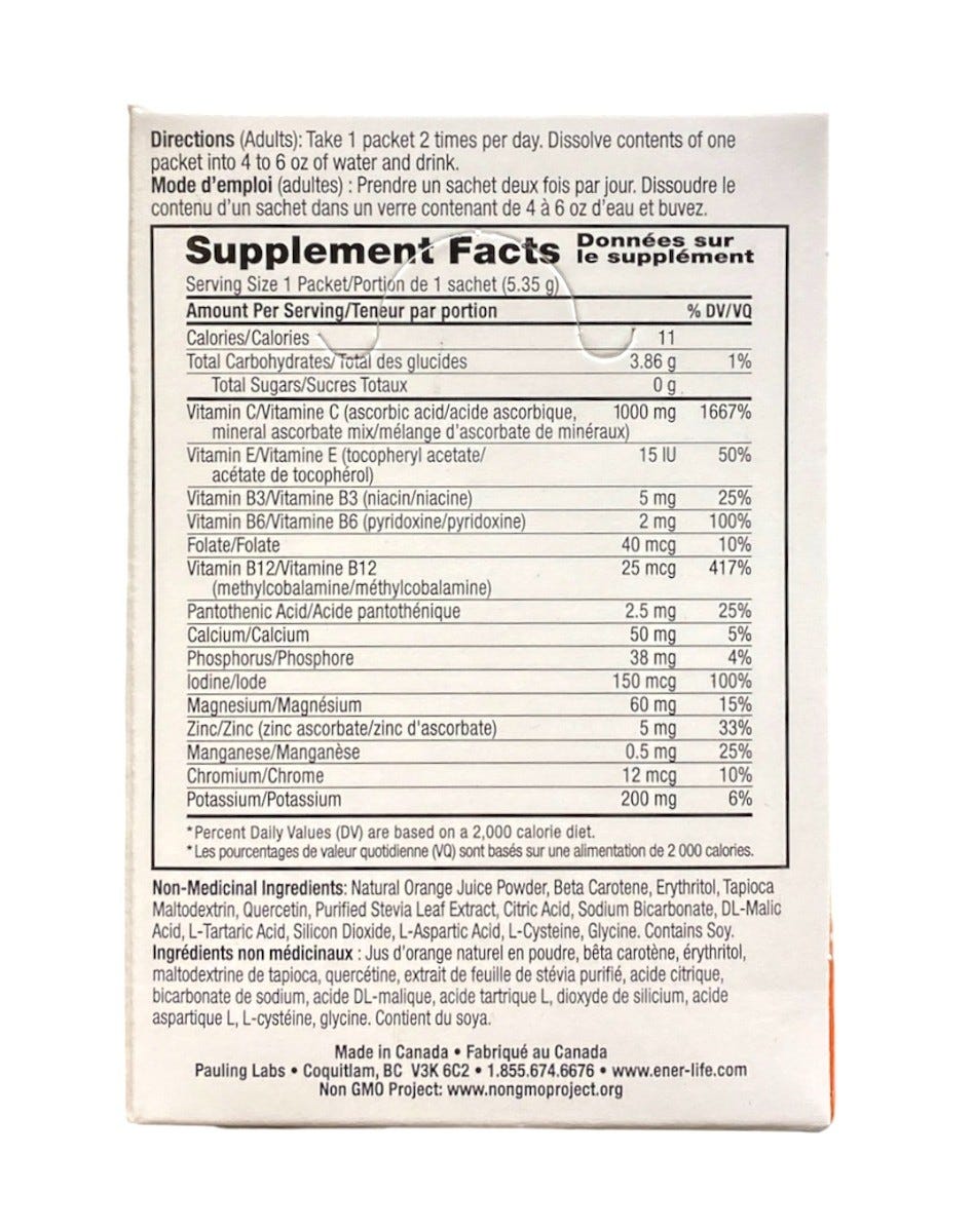 Ener-C is a Non-GMO Certified effervescent multivitamin drink mix in convenient dose sachets. Containing 1000mg of Vitamin C plus essential vitamins and minerals.