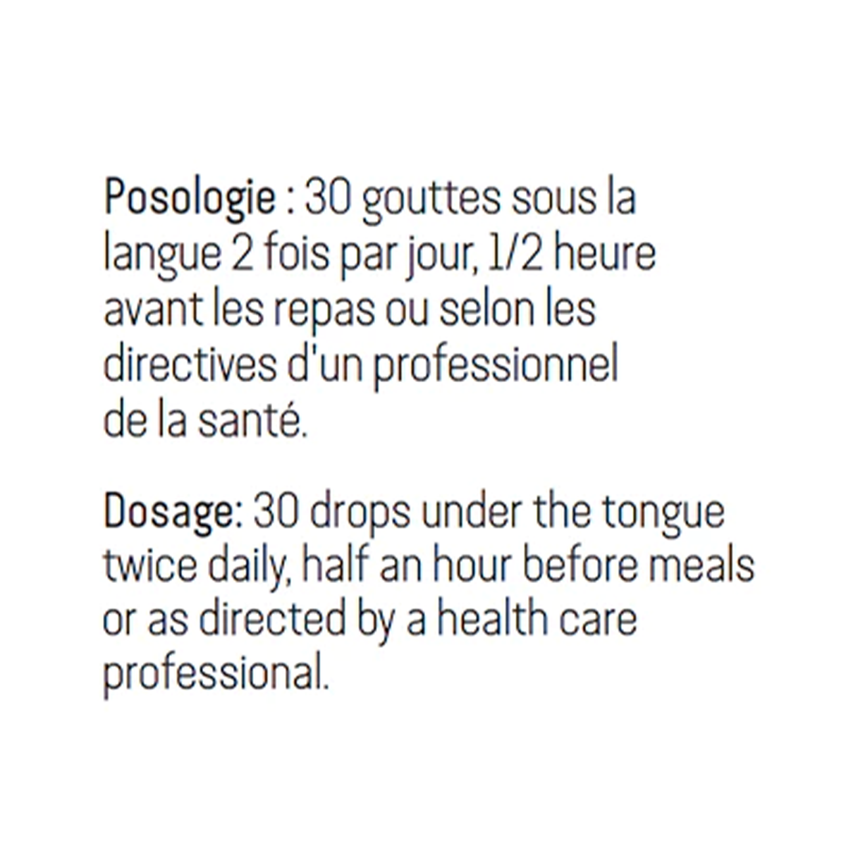 30 drops under the tongue twice daily, half an hour before meals or as directed by a health Wellness-Care professional.