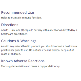 Natural Factors Zinc Bisglycinate 50mg 120 Veggie Caps