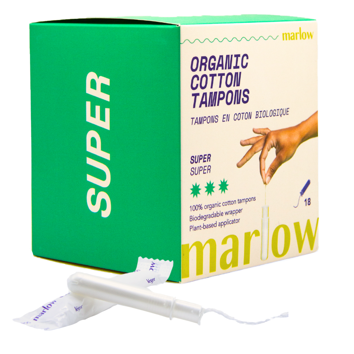 Environmentally Friendly Wrapper - These wrappers can naturally break down and decompose. Marlow's organic cotton tampons are gentle on the planet.