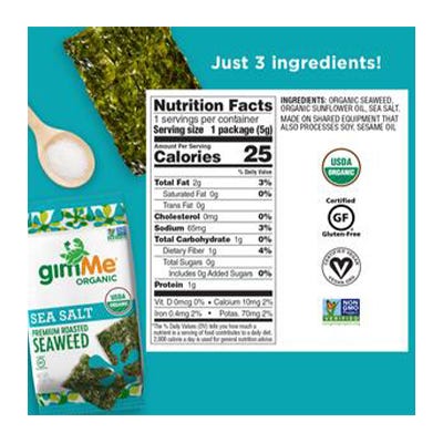 Healthy snacking made easy with these delicious seaweed snacks. The organic and Non-GMO labels make them even better.