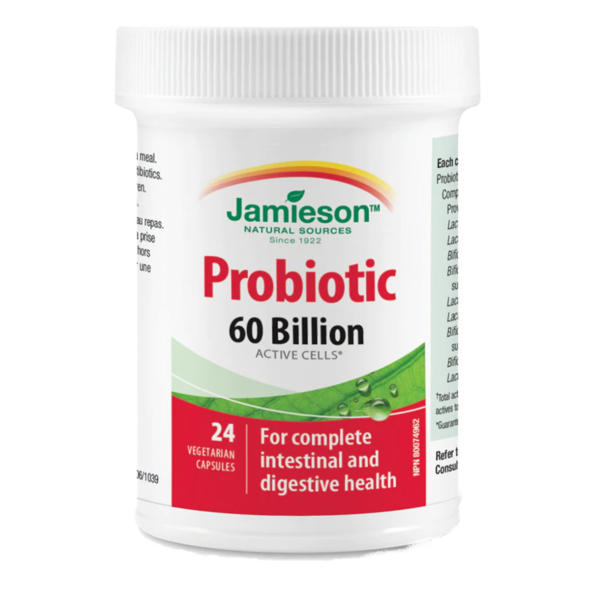 Jamieson Probiotics are formulated using unique probiotic stains to Aid digestive health. Jamieson Probiotics are packaged to provide Protection-Plan-Plan from moisture in order to guarantee potency and freshness, so you know you will receive all the active cells in each vegetarian capsule until expiry. This product has been certified through TRU-ID TM .
