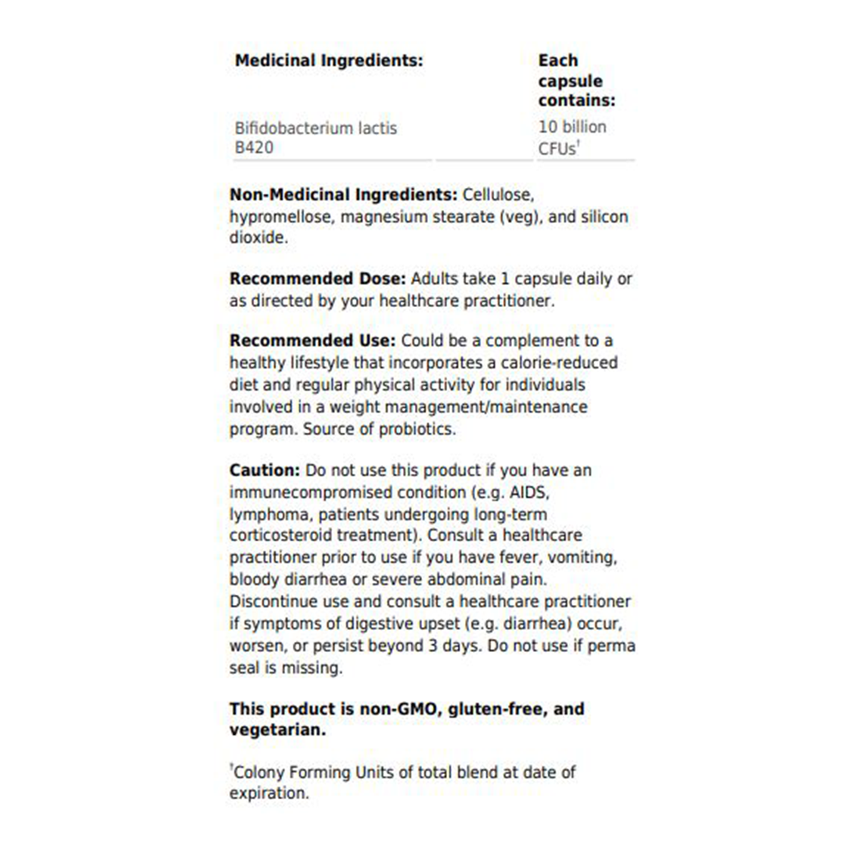 Could be a complement to a healthy lifestyle that incorporates a calorie-reduced Nutrition Plan and regular physical activity for individuals involved in a weight management/maintenance program. Source of probiotics.