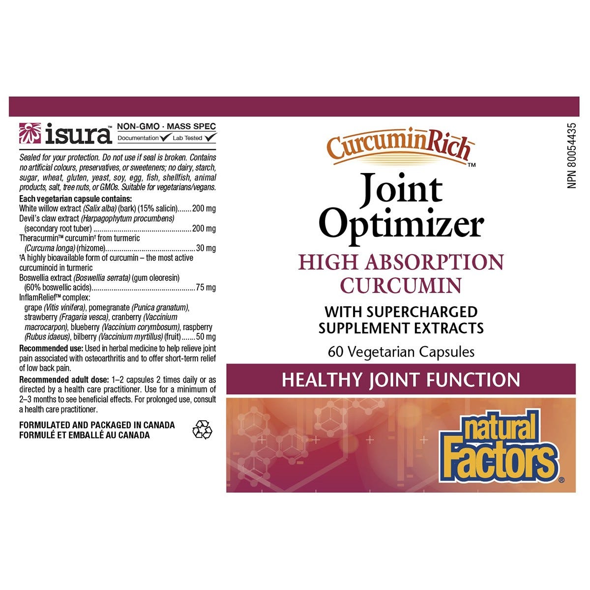 Natural Factors CurcuminRich Joint Optimizer combines the most trusted, effective, herbal supplements for natural joint pain relief and joint function. This formula includes Theracurmin, the #1 absorbed form of curcumin, herbal medicine pain relievers boswellia, white willow bark, and devil’s claw, and antioxidant-rich InflamRelief Complex.