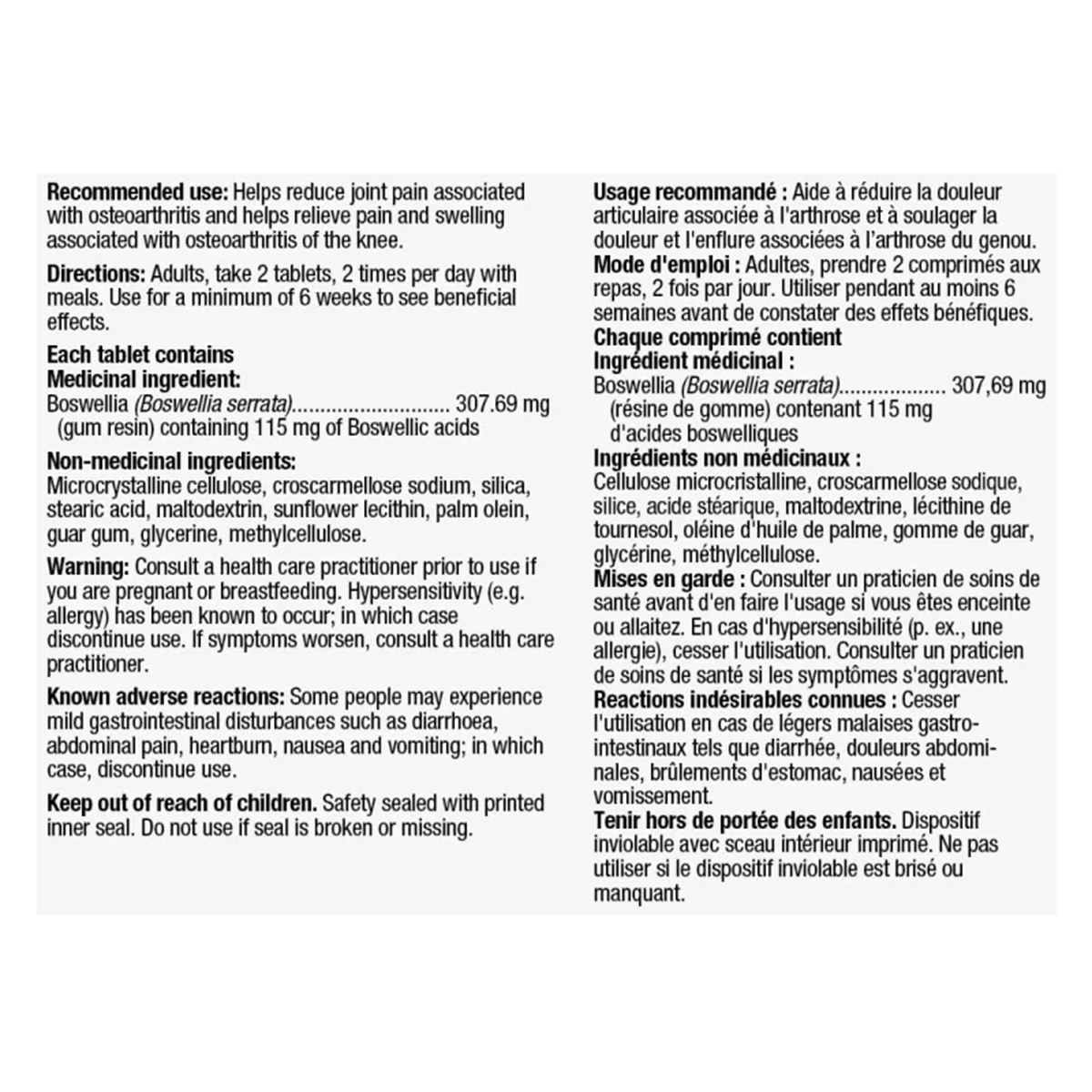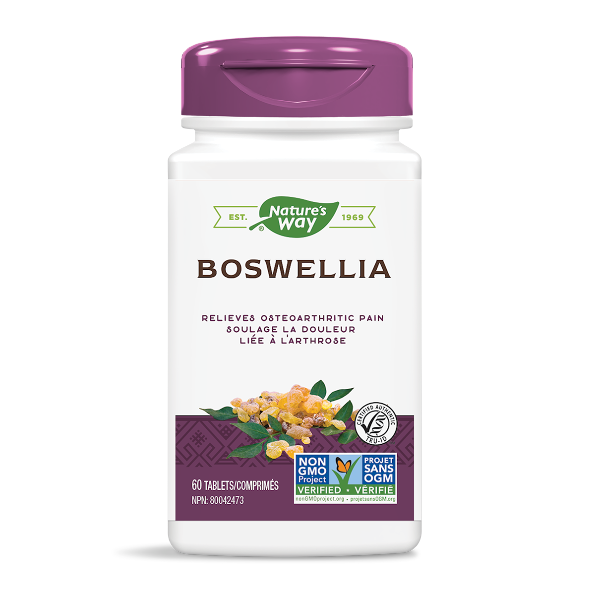 Nature's Way Boswellia helps reduce joint pain associated with osteoarthritis and helps relieve pain and swelling associated with osteoarthritis of the knee. Nature's Way Boswellia is Vegetarian and Non-GMO Project Verified.