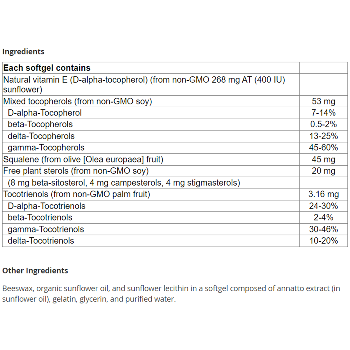 New Roots Herbal’s Vitamin E⁸ contains all eight forms of vitamin E—four tocopherols and four tocotrienols—with squalenes, beta-sitosterols, all non-GMO certified.