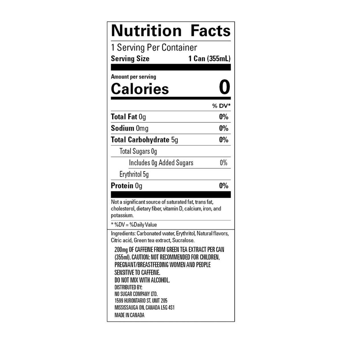 Sparkling water, Erythritol, Natural caffeine (sourced from green tea), Natural flavors, Citric acid, Sucralose.