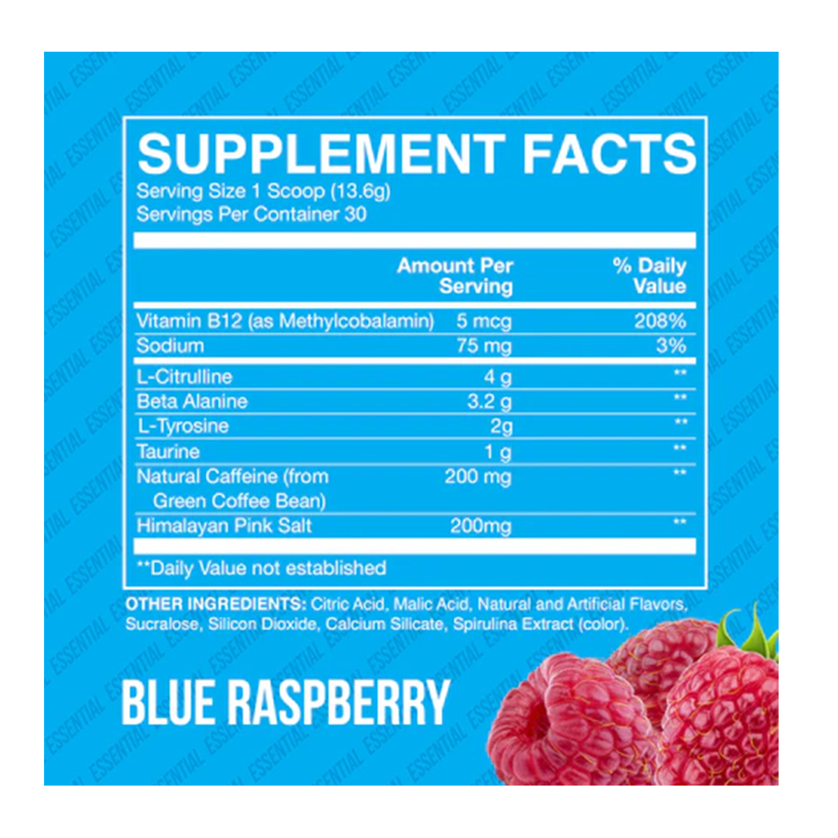 This comprehensive pre-workout is perfect for all lifters, from beginner to advanced. Whether it’s your first day in the gym or you’re a seasoned veteran, these high-powered ingredients work the same. Highlighting a few - each scoop packs in a hefty dose of 4g L-Citrulline to maximize blood flow and deliver serious pumps. We've paired this with 3.2g of Beta Alanine to fight fatigue, enabling you to push the envelope and power through plateaus. Lastly, we've packed in 200mg of Caffeine to hit that sweet spot of stimulating energy to last from the first to last rep of your workout. Anyone who needs a boost physically or mentally to get in the zone can put Essential Pre to use.