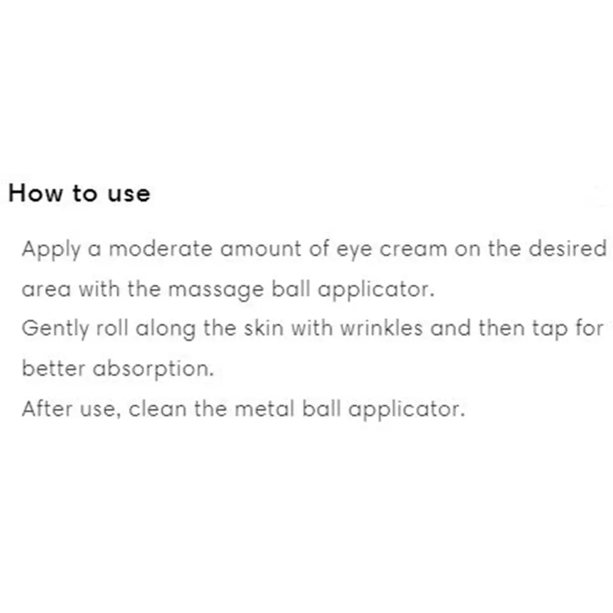 Apply a moderate amount of eye cream on the desired area with the massage ball applicator.