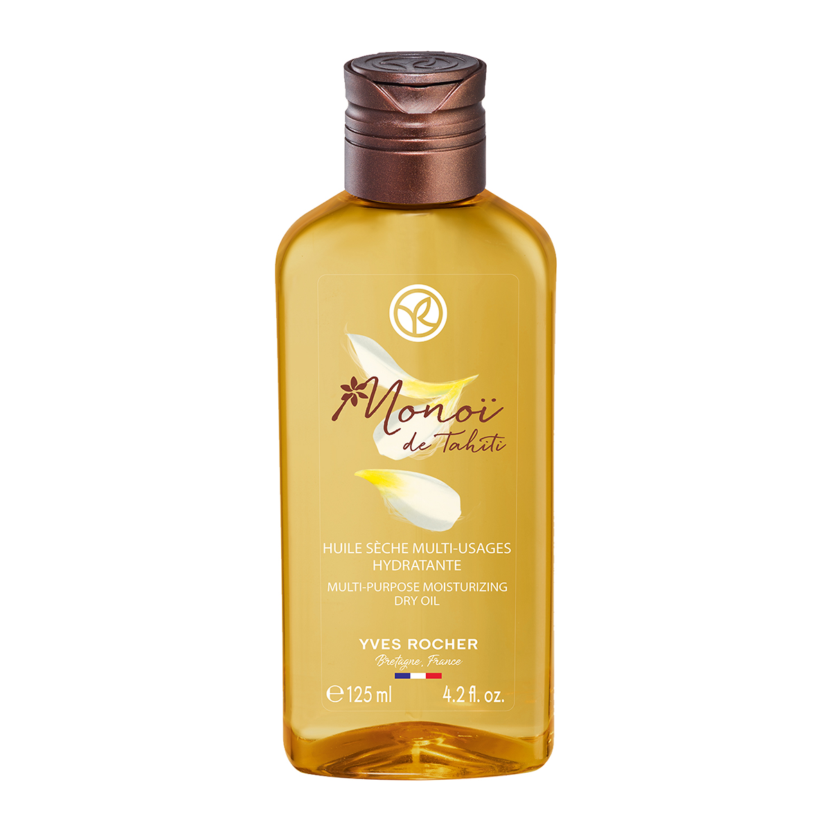 Enriched with Monoï de Tahiti (2%), this oil for body and hair, with a non-greasy finish, moisturizes skin and beautifies the tan.